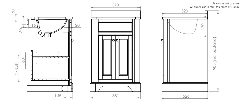 Bring back classic style with the Vitoria 600mm freestanding bathroom unit. This beautiful bathroom basin unit is hand painted and features 5 piece doors. Vitoria bathroom furniture units also feature soft close doors to give a quiet and controlled closure. A classic style ceramic basin completes the look of your new Vitoria furniture unit.